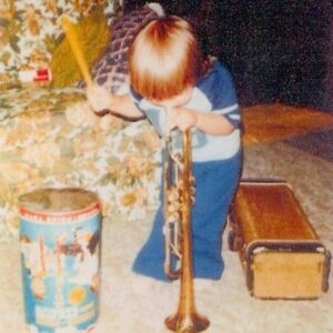 JAY WEBB: I remember I was playing my dad’s, one of my, I think it might’ve been my dad’s first trumpet. And, I remember barely being tall enough to lean over and play the horn. I couldn’t quite pick it up. Um, there are photos of this that exist, and I played it so much that the [00:15:00] bell became smushed on the end, just completely crumpled.